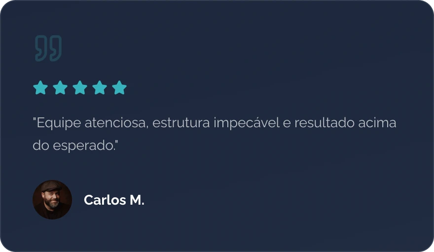 Tratamento completo feito dentro da clínica, sem deslocamentos.